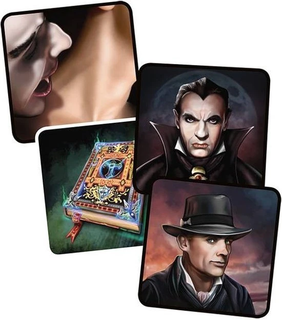 Spannend, interactief rollenkaartspel met vampiersthema E?n van jullie is Renfield, die het samen met de door hem in het geheim aangewezen vampier tegen een legertje vampierjagers opneemt. Het vampiersteam probeert zo snel mogelijk 5 bijtkaarten te spelen, terwijl de jagers proberen om de vampier te ontmaskeren en bij zonsopgang te steken. De jagers kunnen ook winnen door 5 rituelen uit te voeren. Kies in je beurt 2 kaarten, waarvan je er 1 gedekt aan Renfield geeft en 1 open op de aflegstapel legt. Nacht- en bijtkaarten zijn goed voor het vampiersteam, terwijl knoflook belangrijk is voor de jagers. Elke actie levert daarom stof tot nadenken en vooral discussie op. De spelers mogen en moeten voortdurend met elkaar overleggen om te proberen de vampier te betrappen op verdachte acties en uitspraken. De vampier probeert zich op zijn beurt als jager voor te doen, maar wel zijn bijt- en nachtkaarten te spelen. Dit levert interessante, zenuwslopende situaties op. Nadat iedere speler aan de beurt is geweest of Renfield een zonsopgang heeft omgedraaid, eindigt de nacht en handelt Renfield zijn ontvangen kaarten af. Bijtkaarten worden voor de spelers gelegd en reduceren hun handkaarten. Nachtkaarten gaan in de nachtstapel, waardoor de kans op een zonsopgang kleiner wordt. Dat is belangrijk voor het vampiersteam, want de jagers mogen uitsluitend bij zonsopgang steken. Als er uitsluitend knoflook in Renfields stapel zit, mogen de jagers een ritueel uitvoeren, wat hen informatie of een ander voordeel oplevert. Nosferatu is een sfeervol en gezellig kaartspel voor mensen met stalen zenuwen!