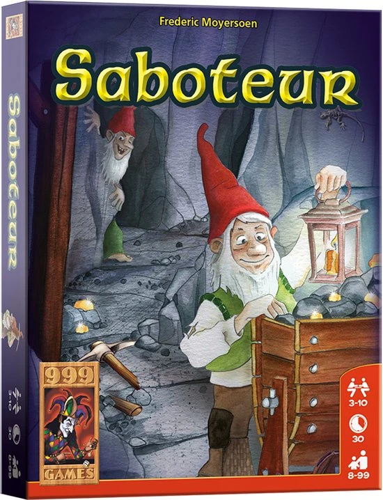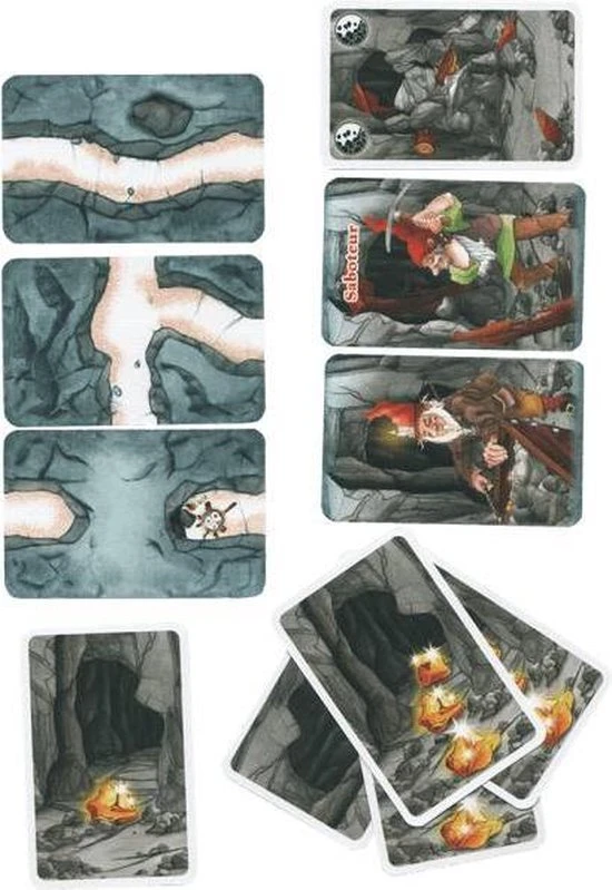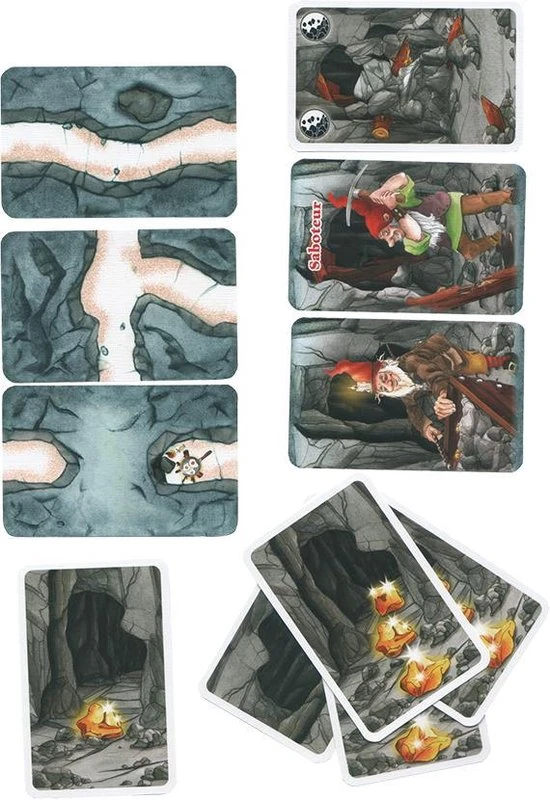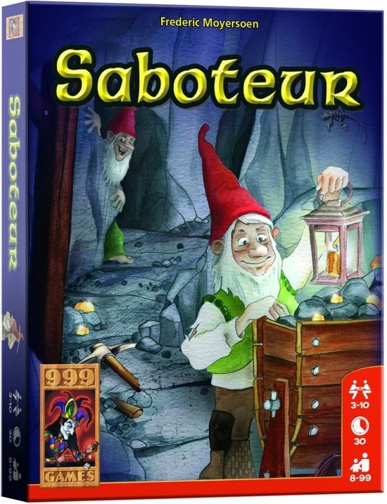 Schatgravers en saboteurs zitten elkaar dwars in dit rollenkaartspel. De vraag is alleen wie aan welke kant staat! Iedere speler krijgt een rollenkaart, die aangeeft of hij een saboteur of een schatgravende dwerg is. Hij houdt zijn rol voor iedereen geheim, maar mag natuurlijk ondertussen roepen wat hij wil. Verder krijgt iedere speler een aantal kaarten met gangen, gereedschap of sabotagemogelijkheden. De schatgravers hebben tot doel om de schat te vinden, terwijl de saboteurs dat proberen te voorkomen. Zo kunnen ze elkaars gereedschap saboteren of gangen de verkeerde kant uitleggen. Omdat niet met zekerheid kan worden vastgesteld wie bij welke partij hoort, kan het best voorkomen dat je zo een bondgenoot hindert. De winnende partij krijgt aan het einde van het spel een beloning. Wie na een aantal ronden de meeste beloningen heeft verzameld, wint het spel. Saboteur is een ideaal spel voor grotere groepen, maar is al erg leuk vanaf 3 spelers.