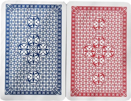 Twee volledige sets elk in eigen onderverpakking. Degelijke kwaliteitskaarten om uren speelplezier te beleven. Ook geschikt voor poker.