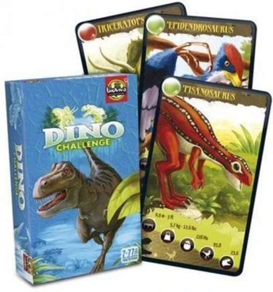 De Dino-challenge is geschikt voor kinderen vanaf zeven jaar. Ga de uitdaging aan met je tegenstander en leer alles over dinosauriers. Is jouw dino het grootst? Het snelst? Kies een eigenschap en win.