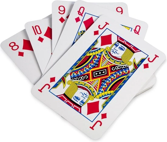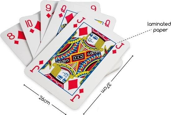 Een onopvallend spelletje kaartspelen is er niet meer bij met deze grote kaarten! Gemaakt van gelamineerd papier. Afmeting 28,5 x 21 cm