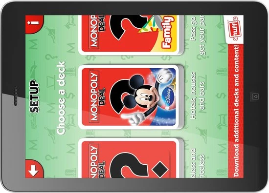 het leuke Monopoly Deal is er nu ook in een leuk Disney thema, bemachtigen eigendommen of stelen van je tegenstanders! Wie als eerste 3 setjes eigendommen bezit wint het spel. Gebruik de verschillende actiekaarten om huur te vragen, kaarten om te ruilen of te stelen van je tegenstanders, en nog veel meer. Zorg dat er genoeg geld in je bank zit en kijk uit, want andere stelen ook van jou! Dit Item betreft de Benelux editie, verzamel provincies en regio?s uit Nederland, Belgi? en Luxemburg , zoals Noord-Holland, Flevoland, West-Vlaanderen, Antwerpen, Luxemburg en treinstations als Amsterdam-Centraal en Brussel Zuid.