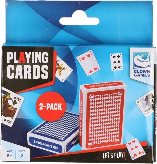 Set van 2x clown games speelkaarten. Sets van speelkaarten met een klassieke bedrukking. Deze kaarten zijn ideaal om mee te nemen op vakantie of voor spelletjesavond. Materiaal: Karton. Kaartspellen – Speelkaarten – Poker/pokeren.