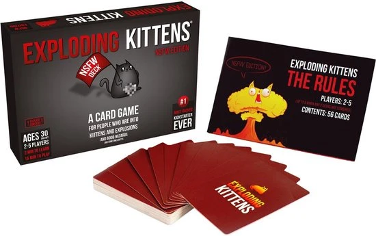 Exploding Kittens is een geweldig kaartspel voor mensen die van katten, explosies, tietmagi?rs en soms ook van billen houden. Deze NSFW (Not Safe For Work) editie is geschikt als partyspel voor volwassenen.