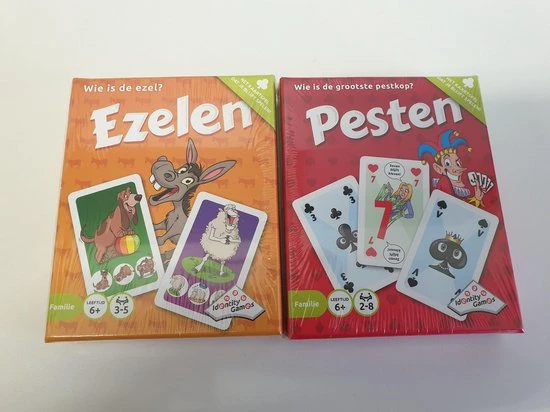 Ezelen met de hele familie! Ezelen, het vrolijke kaartspel dat iedereen kent, nu in een nieuwe uitvoering. Met grappige dierenkaarten en echte ezels. Ezelen is een gezellig, hectisch en snel spel voor de hele familie. Schuif de kaarten naar elkaar, verzamel vier dezelfde en pak als eerste een ezel. Te laat? Dan word je de ezel! 2 tot 8 spelers. 15 min.