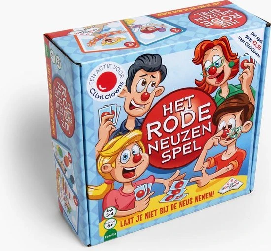 Het Rode neuzen spel is speciaal ontwikkeld voor het goede doel CliniClowns. In de doos vind je 4 rode piepneuzen en 44 speelkaarten. Een gezellig kaartspel waarin je flink moet bluffen, opletten en de andere spelers goed in de gaten moet houden! Laat je niet bij de neus nemen door de andere spelers en raak zo snel mogelijk al je kaarten kwijt!