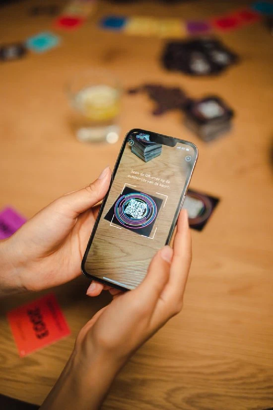 1.Kies een muziekkaart en scan de QR-code met de gratis Hitster app om het lied automatisch af te spelen op Spotify.