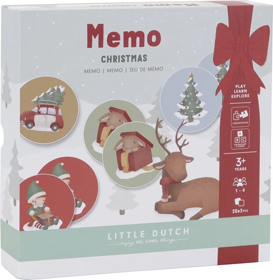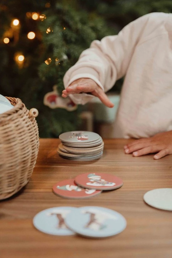 De feestdagen zijn perfect om samen spelletjes te spelen. Kan jij onthouden waar de dubbele kaartjes op tafel liggen? Dit eenvoudig te spelen memospel is net zo vermakelijk als educatief. De ronde kaartjes zijn voorzien van prachtige winterse illustraties. Van een sneeuwpop tot een rendier. Hussel de kaartjes goed en leg ze met de afbeelding naar beneden neer. Elke beurt worden er twee kaartjes omgedraaid. De speler met de meeste paren wint het spel. Memo kan solo of in groepen worden gespeeld. Het zorgt voor eindeloos veel entertainment en leert kinderen op hun beurt te wachten. Het kaartspel stimuleert daarnaast belangrijke vaardigheden, zoals concentratie en focus.