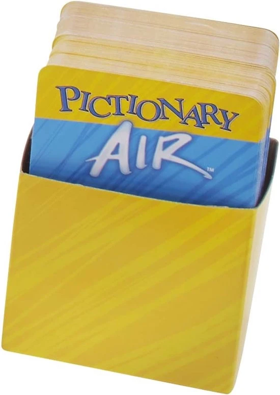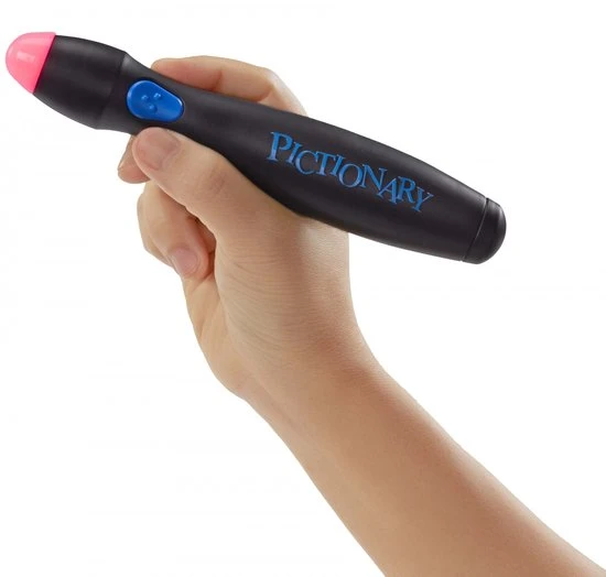- HERINNERINGEN BEWAREN: Of je nu tekent, raadt of kijkt, de resultaten zijn dolkomisch! Registreer je optreden in de app en lach er later opnieuw om of deel het met vrienden! INHOUD: 1 Pictionary Air pen, 112 dubbelzijdige kaarten met aanwijzingen, kaartendoos en instructies. E?n AA-alkalinebatterij is inbegrepen. Een leuk gezelschapsspel voor een feestje of een spelletjesavond – perfect geschikt voor spelers van 8 jaar en ouder. Afwijkende kleuren en versieringen mogelijk.