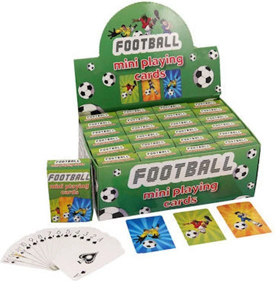Mini voetbal thema speelkaarten 6 x 4 cm in doosje. Materiaal: karton. 48 kaarten per spel. Leuke kleine kaartspelletjes voor kinderen en/of volwassenen. Handig formaatje.