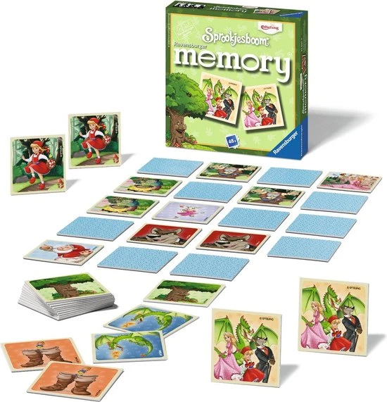 memory? van Ravensburger is al meer dan 50 jaar het meest geliefde eerste spel dat een kind met andere spelen kan… en hoe! Meestal winnen zij gemakkelijk van volwassenen. Daarnaast oefent het kind spelenderwijs belangrijke vaardigheden zoals concentratie en uithoudingsvermogen. Deze mini memory? met afbeeldingen van de Sprookjesboom is al geschikt vanaf 3 jaar.