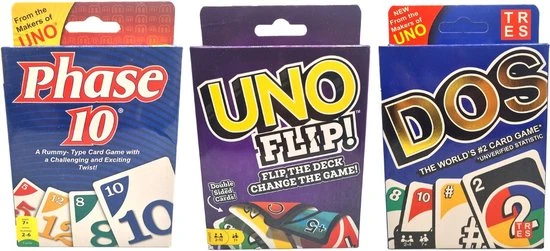 Hier de Combi deal met exclusieve kaartspellen “Uno dos – Uno Flip – Phase 10