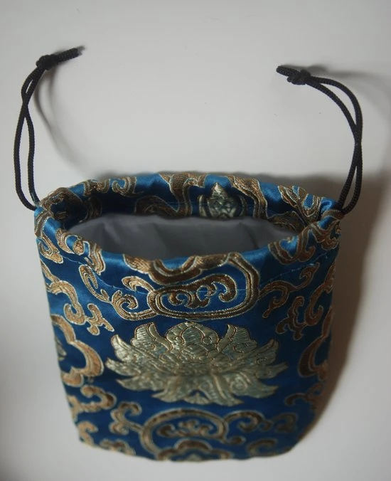 De zakjes worden met de hand vervaardigd. Om geen stof te verspillen, wordt de hele stof gebruikt. Het borduur motief zal hierdoor per zakje verschillen.