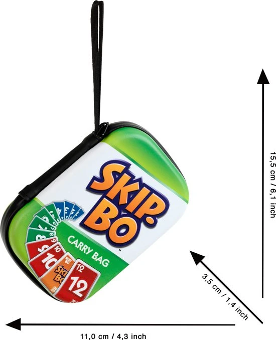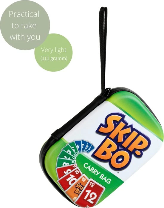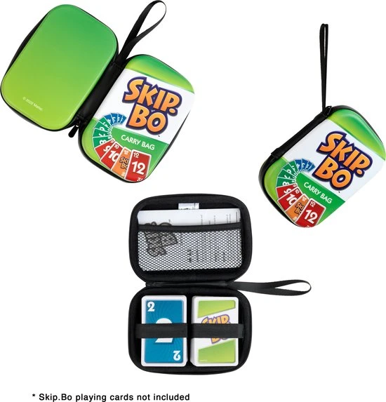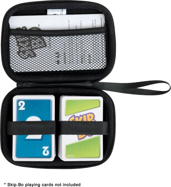 met mesh binnenzak voor Skip.Bo instructies en twee binnenste elastische banden om in tweeën te bevestigen afzonderlijke stukken Skip.Bo-kaarten.