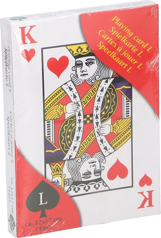 Speel een potje kaarten met jouw vrienden of familie. De kaarten zijn extra groot, zodat ouderen en slechtziende er makkelijk mee kunnen spelen. Kaartspel bestaat uit 54 kaarten.