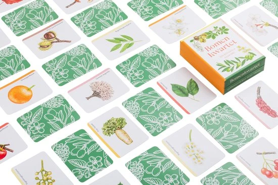 Ontdek elf prachtige bloeiende en vruchtgevende bomen aan de hand van Ryuto Miyake’s verbluffend mooie, gedetailleerde illustraties. Tony Kirkham, het hoofd van het Arboretum van de koninklijke botanische tuin in het Engelse Kew, heeft elke boom voorzien van informatie. Ontdek wie van je vrienden het meest weet over de natuur! Neem de tijd om de verschillende onderdelen te ontdekken en kijk of je de bomen in je omgeving herkent! Dit inspirerende spel stimuleert je om de natuur en alle onderdelen van de prachtigste bomen ter wereld beter te leren kennen.