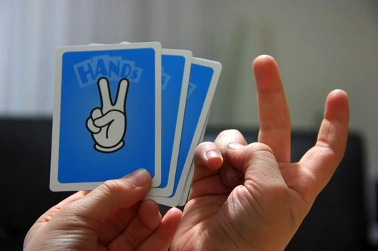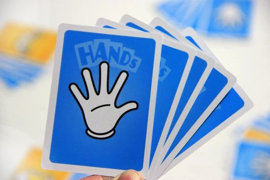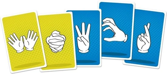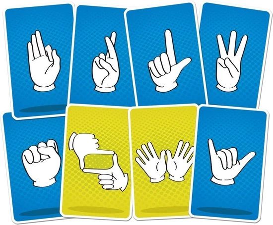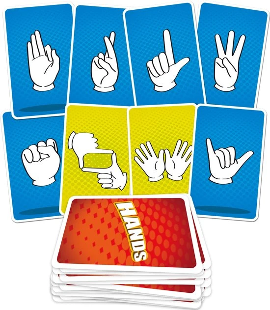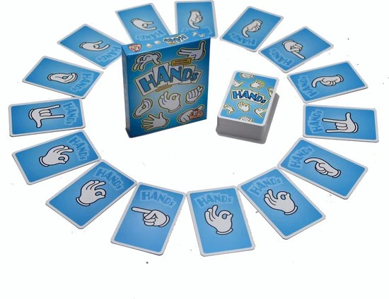 Handen omhoog! Handen omlaag! Geen handen! Duimen omhoog! Wijs naar de lucht! Praat met je handen in plaats van met woorden en probeer er achter te komen wiens hand hetzelfde zegt als jouw hand. Maar pas op voor de speler die met beide handen praat… Je kunt maar beter doen wat hij zegt! ? Het is een hilarisch reactiespel. ? Beschikbaar in het leuke, kleine blikje, het is een aanvulling op de reeds verkrijgbare reeks. ? Met een kleine en grotere groep te spelen. ? Er zijn geen beurten, iedereen speelt tegelijkertijd de hele tijd door. ? Heel veel interactie, men scoort punten door dezelfde kaarten uit te beelden. Ben je de laatste die de 2 handen kaarten uitbeeldt? Dan krijg je een minpunt! Opletten dus! ? Meertalige spelregels toegevoegd.