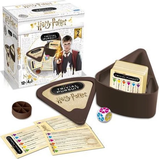 Deze Harry Potter versie van Trivial Pursuit bevat 600 vragen over Harry Potter, die zelfs de hersens van de grootste fan doen kraken. Er zijn 6 categorie?n: Zweinstein (blauw), toverdranken en spreuken (roze), magische voorwerpen (oranje), tovenaars en heksen (geel), kwaadaardige krachten (paars) en dieren en magische wezens (groen). Beantwoord jij alle vragen juist? Daag je vrienden uit en laat hen zien hoeveel jij over Harry Potter weet!