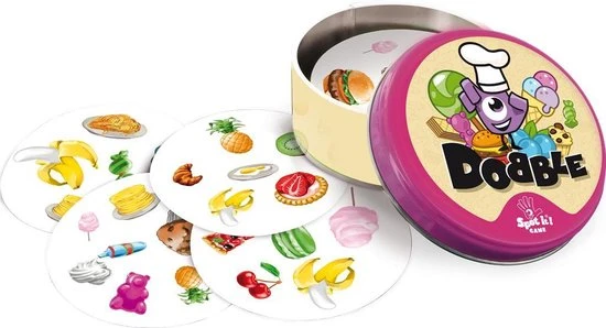 Dit is een FR/NL versie! Dobble, het onmisbare observatiespel voor het hele gezin, is terug in een editie voor fijnproevers en lekkerbekken. Hongerige symbolen zijn ge?ntroduceerd: wees de eerste die het gemeenschappelijke tussen twee kaarten vindt om het spel te winnen! Inhoud :